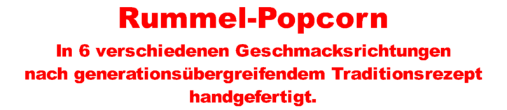 Unsere Erfahrung wird von Generation zu Generation weitergegeben und sind in der Lage unser leckeres Popcorn stets mit neuen interessanten Geschmacksnoten zu gestalten, um Ihre Genusswelt zu vervielfältigen. Durch unsere ausgereiften Rezepturen bieten wir Ihnen die Geschmacksrichtungen Salz, Zucker, Schoko, Karamell, Regenbogen und Erdbeer an.